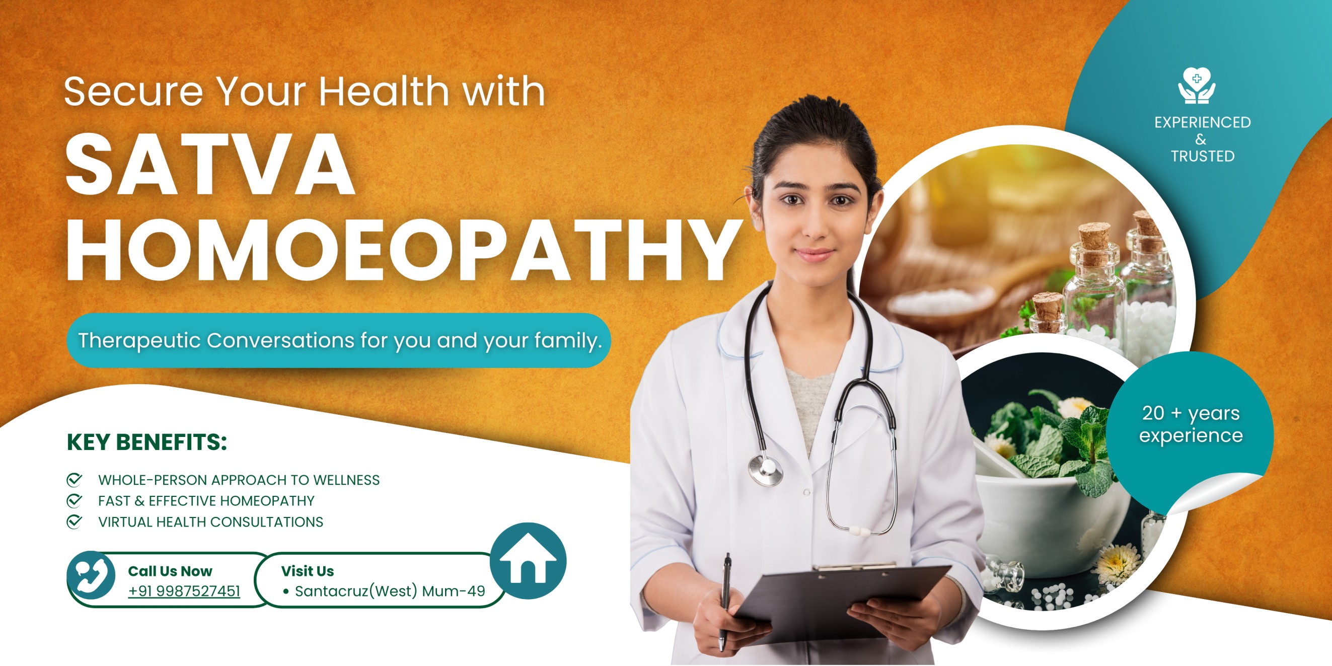 Satva Homoeopathy Mumbai, founded by Dr. Rakesh Gupta (MD (Hom), MBA (HCS)), offers expert homeopathic care for acute, chronic, and lifestyle-related conditions. Our personalized, constitution-based treatments ensure safe, effective, and lasting relief—trusted by patients across Mumbai for holistic healing.